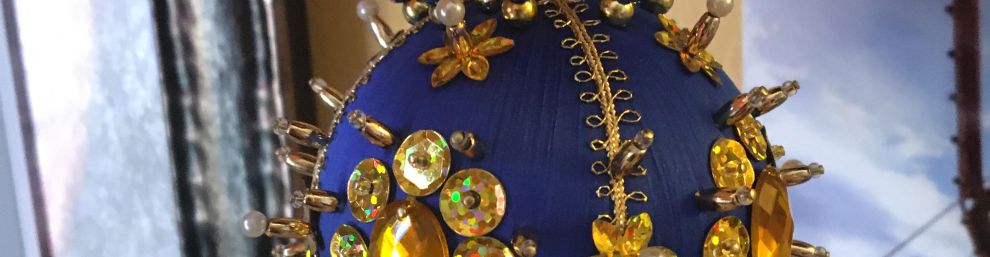 Craft Projects completed: 1 Finished an ornament! So pleased with myself. (Photo below: dark blue ornament with gold and pearl beads with a gold ribbon hanger. Victorian or Russian style.)